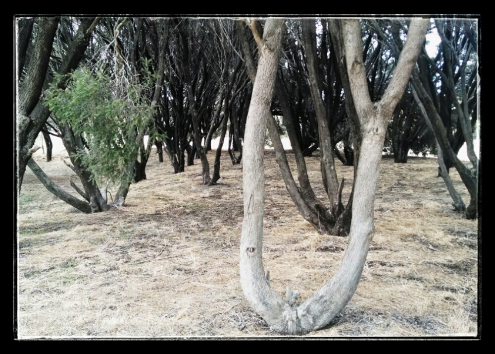 There’s a wide promenade of red patched bitumen in front of the stone buildings fronting the ocean, which is really an estuary, with people and their dogs and prams walking up and down. The sand is coarse, orange-brown, and the stiff breeze whipped up the water.