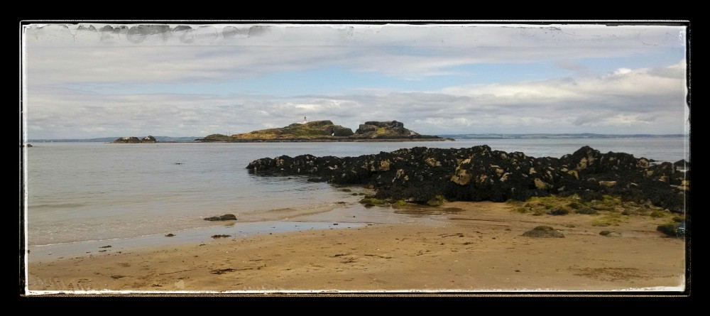 Parked the car and we walked down a wide path, through wheat fields ripe with grain and then through the dappled shade of woodlands over grassy hilly sand dunes to Yellowcraigs beach with a long, wide beach of orange sand and gently rolling ripples of waves. Most of the occupants of the beach were children with their bucket and spades and dogs. I think Britain has more dogs than people. It reminded me of my childhood reading of books of English children at the seaside. It exactly fitted my preconceptions!  Close by the shoreline was a little island that is supposed to have inspired Treasure Island by R.L. Stevenson who had lived nearby. Do children read that book any more?