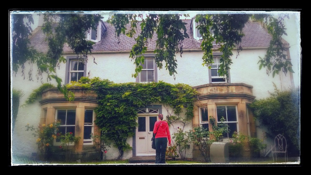 And we finally found it! At the end of a little road that crept round the side of the hill through green tunnels of huge oaks and over a narrow bridge crossing the burn (Scots for a stream). Jennie who sounds very English was so welcoming and we were shown to our twin share bedroom with low sloping ceilings with a nearby bathroom. The house is neither old nor very new, but comfortably nestled into the side of the hill. Nearby you can hear the constant sound of the the burn as it rushes down the mountain. We were so glad to finally get here! And we arrived in sunshine too! Just a few threatening clouds hanging about.