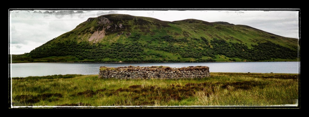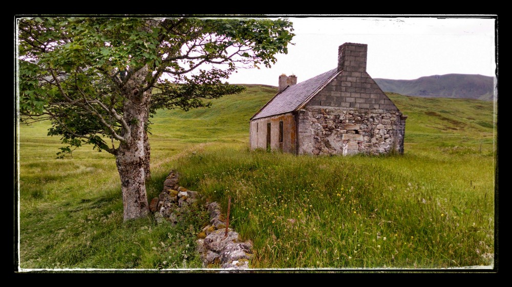 A very narrow road. Only wide enough for one car. So if you did happen to meet an oncoming car, you had to pull right over on to the side of the road. Stunning, soaring high hills. Rounded and smooth, covered with low growth, mainly green, brown and bronze coloured heaths. An occasional farmhouse, a few remote tumbledown, abandoned cottages. Here’s one that was by the road so we explored it.