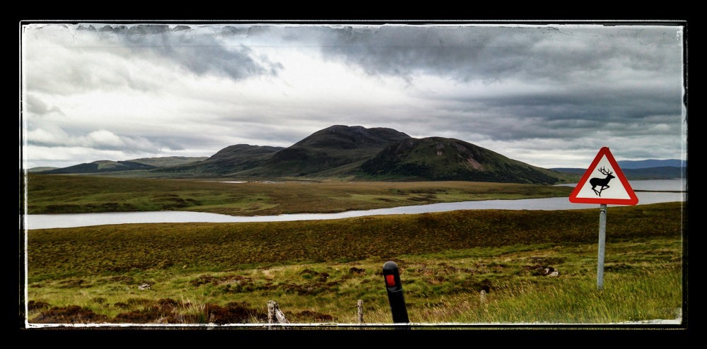 Because we don’t like tracing our steps if at all possible, we decided to return a different way. We headed west and drove across three/quarters of the “top” of Scotland. The rain stopped, and as we dipped up and down through the hills, we saw stunning views of the ocean on our right. Then we turned south near the town of Tongue and this last part felt like the “real” Highlands to us.