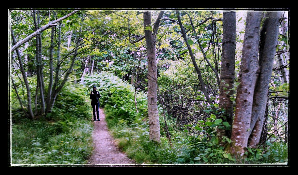 Nearby was another walk. Called the Bluebell Wall to Dunrobin Castle. So we set off again. Total contrast to the last walk. Walking through dappled woodlands. With no bluebells because it’s the wrong season.