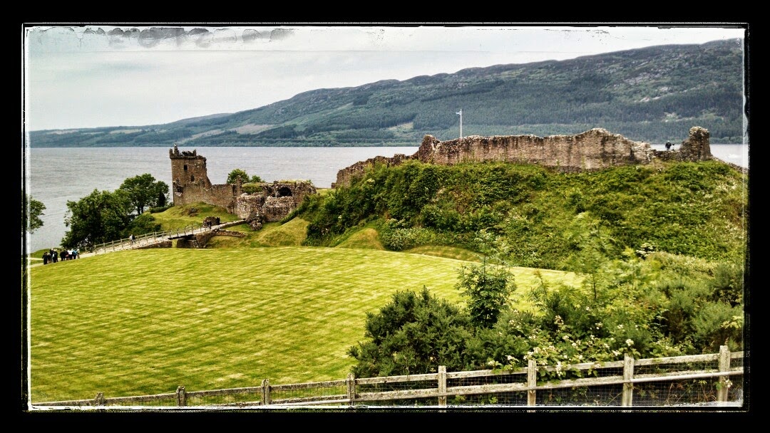 Rosie and I took our waterproof jackets – just in case – and walked through Drumnadrochit village, through farmlands alongside a narrow busy road the 3kms to the ruins of Urqhart Castle, perched on a rocky outcrop overlooking Loch Ness.